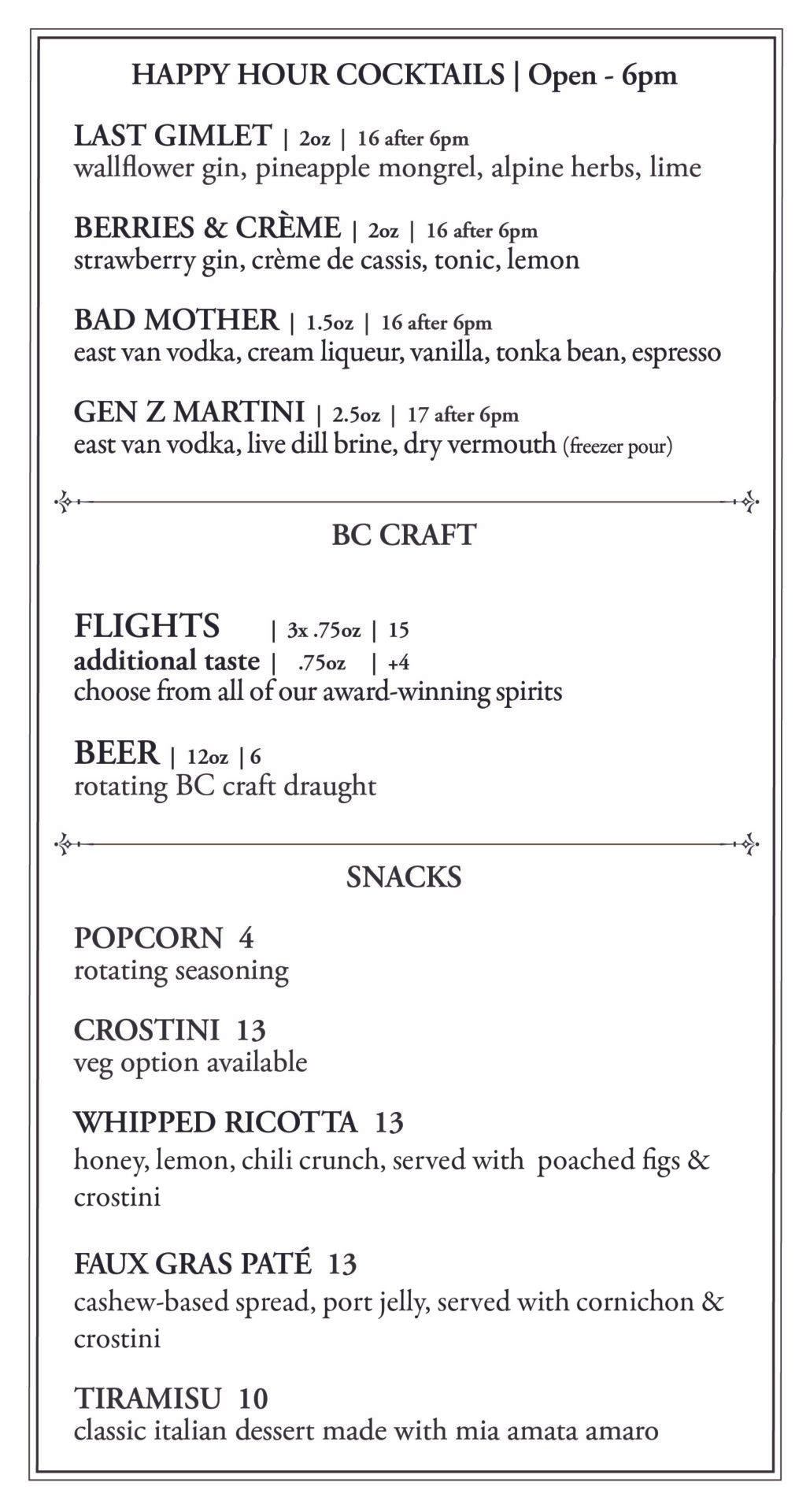 Menus & Cocktails